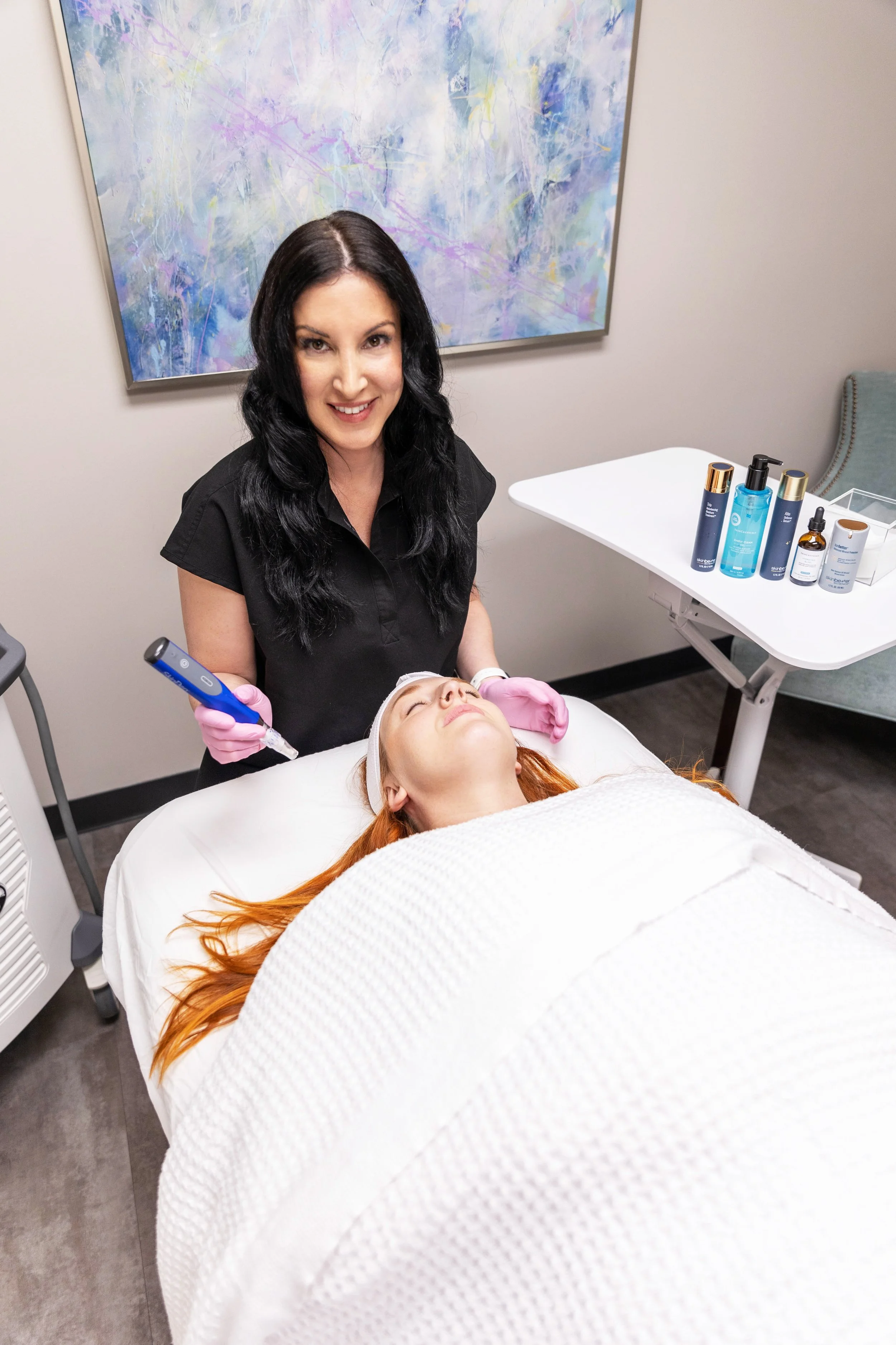 Of course Aimee is gratified by praise for her skills as an aesthetician, but she’s not surprised. She knows the results one can expect from every treatment AMG Aesthetics offers, telling us, “Like Stevye, each patient leaves the office with specific post-care instructions and take-home products to assure proper care is taken during their healing process, as well as my personal phone number in case they have any questions. While there’s no downtime in the sense that patients need to miss work, skin is usually red for a few days after microneedling, followed by 2–4 days of peeling and flaking. After that, you're good to go!”