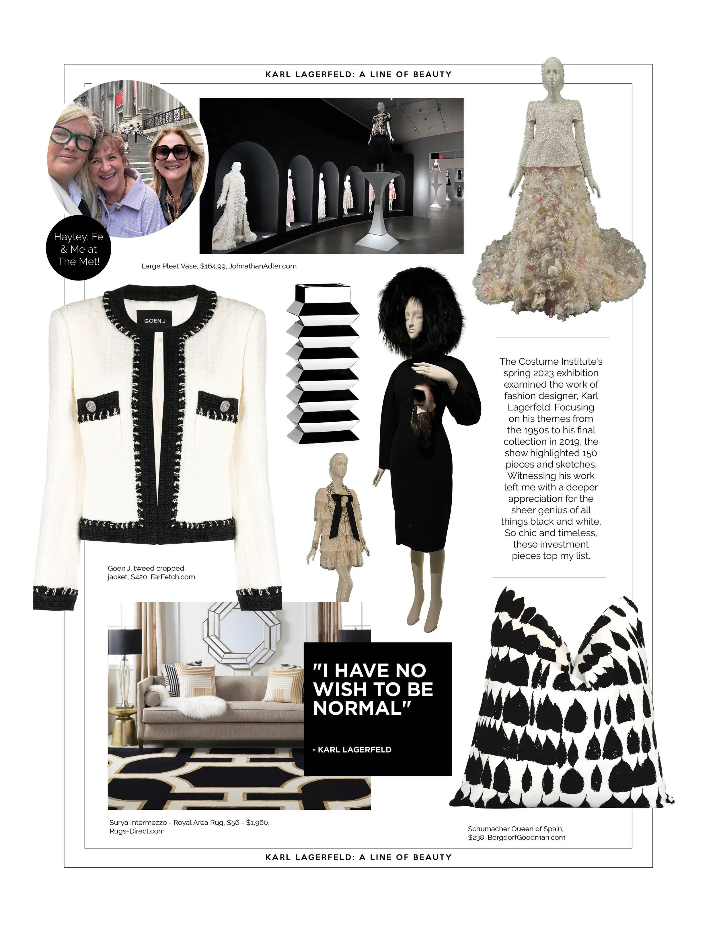 Of course we saw shows and dined in fantastic places, but our field trips were the highlight of our adventures. Personally, I’m looking forward to figuring out how to mix all these fabulous influences into my home and wardrobe. I hope the following pages filled with my field trip inspired goodies ignite you, too. See you soon on the Barbie-pink carpet!