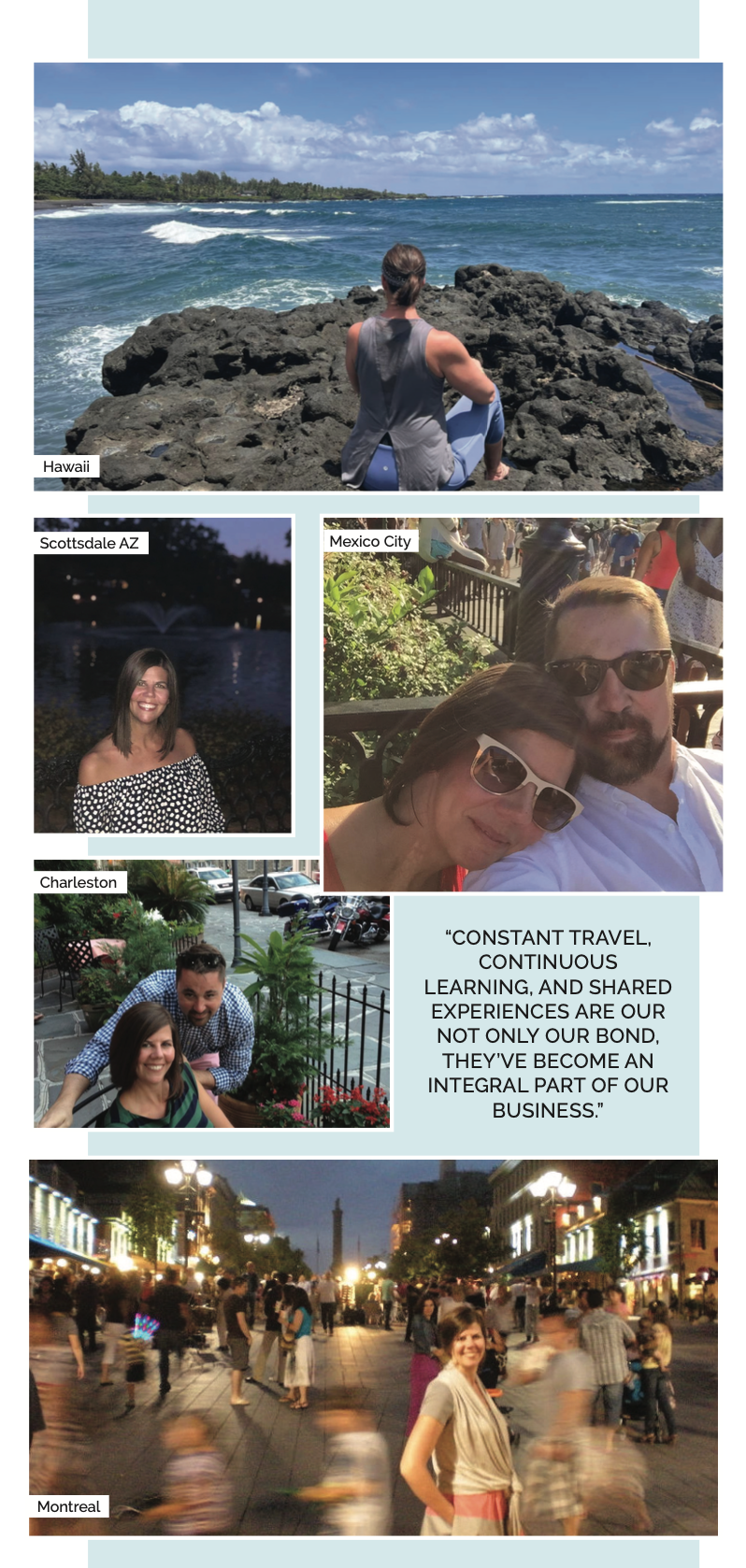 Hailing from a large Sicilian family, Leslie is the only girl out of five children, which might explain her fearlessness and take-charge personality. “They’ve become Aaron’s family, as well. “My family not only loved him, they also introduced him to travel,” Leslie explains. Also Sicilian, Aaron laughs, “There’s always a party, whether it’s for Christmas, Arbor Day, or Flag Day—any reason to get 30 or 40 people together.” It’s important to note this large family also serves as product testers and Aaron even has a story about using a CBD pet product to successfully bring peace to a neurotic family dog!