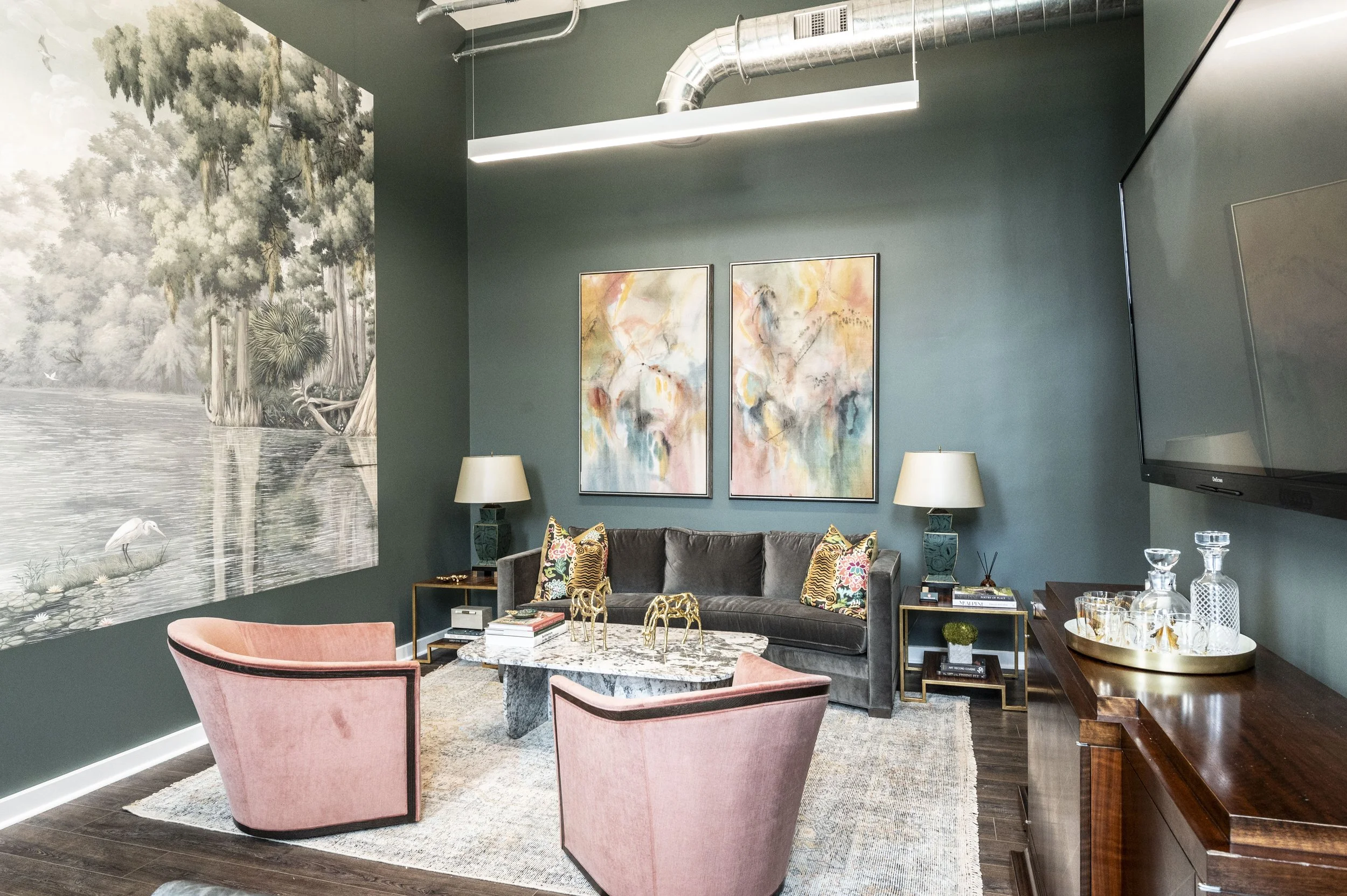 During a recent run-in they shared their excitement about their latest venture — a swanky new office for their business meetings and client interactions. And they were super proud to share they even had Cindy Meador, a local all things interior guru, decorate it for them. It didn’t register at first but once we started talking about the location and all the posh design elements, the reason we’re such big fans of this duo became crystal clear.
