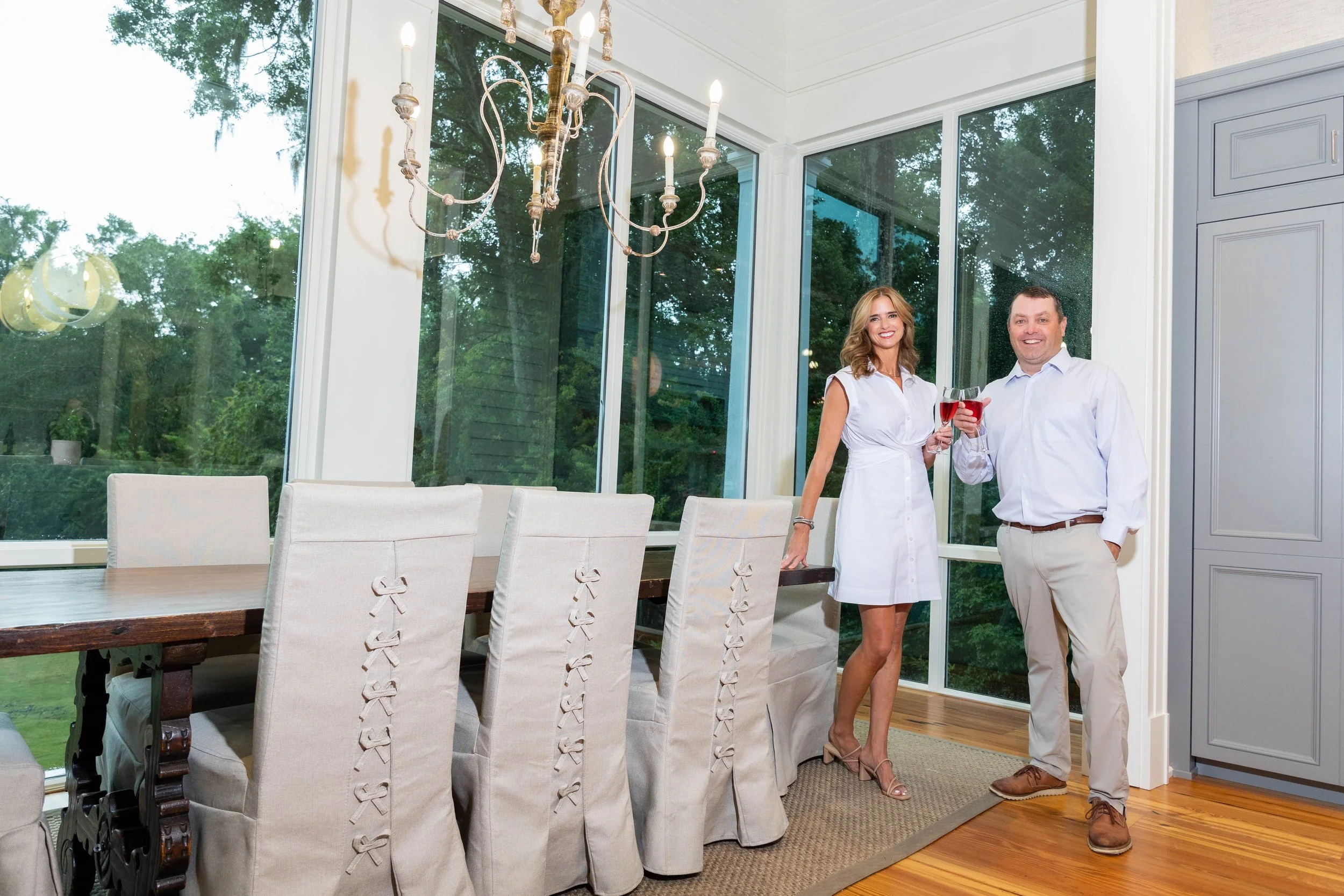 Recalling that the McDonald’s purchased what they thought was their forever home in 2015 with dreams of raising their two daughters, Abby, 16, and Avery, 12, on this picturesque water-front property, they were devasted by the termite-infested turn of events not long after. Having to start a renovation from the ground up was unimaginable. Distraught and displaced, the couple contacted the adored Cochran Builders and, fortunately, the rest is history.