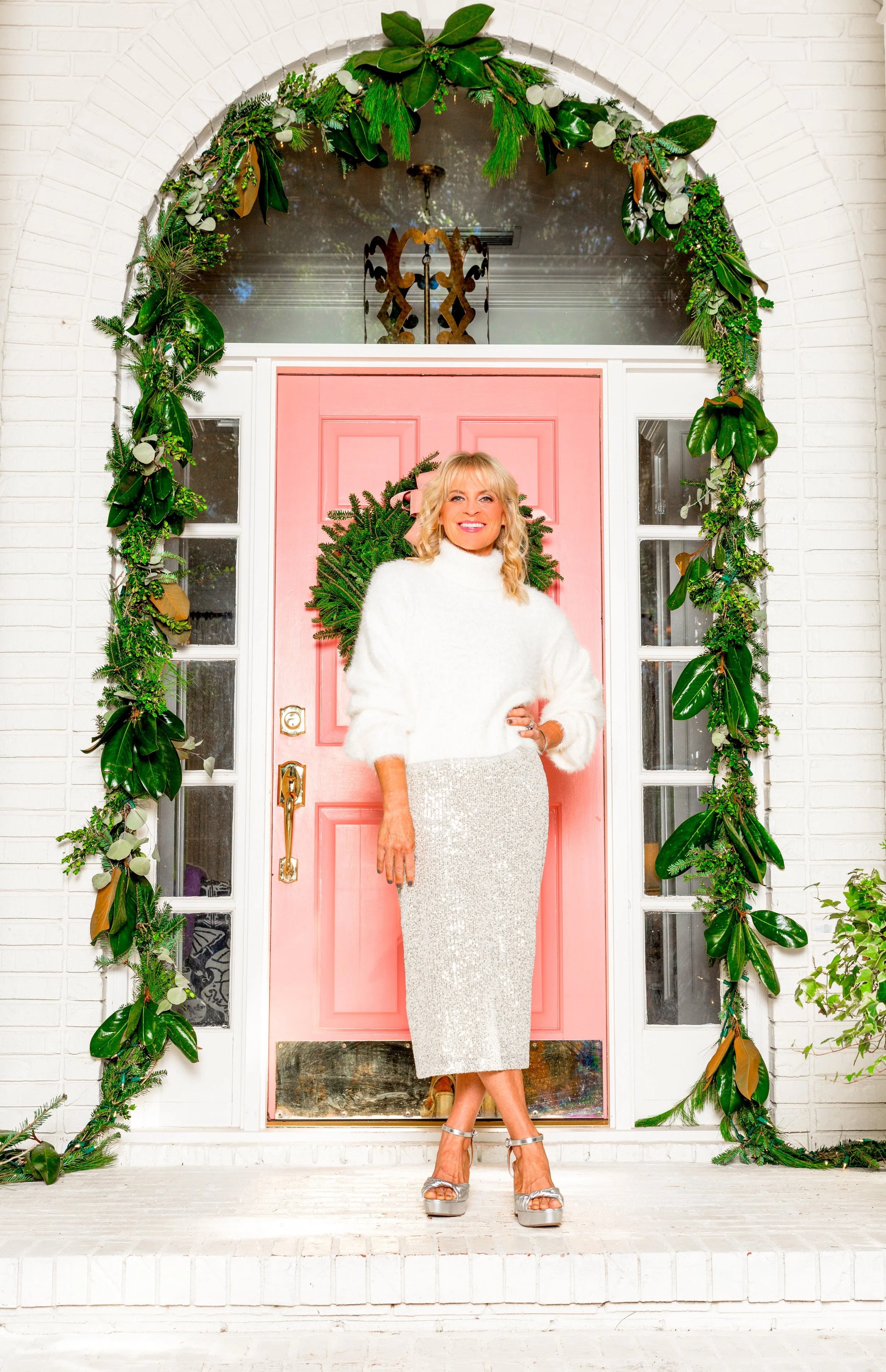 Wondering what prompted the pink front door, Elizabeth shares, “After we painted the brick on our home white, I knew the door just had to pop. I tried a few other colors and nothing looked quite right. Then I woke up one morning and knew the door had to be pink. Now pink is my signature color!”
